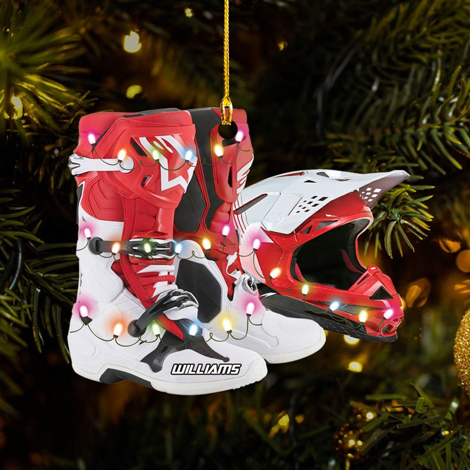 Personalized Ornament Motocross Boots Hemlet Custom Shaped Ornament, Made By Acrylic And The 2 Sides Are The Same H2511