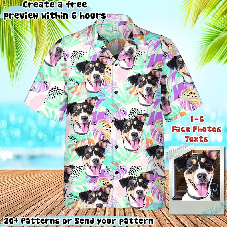 Personalized Photo Hawaiian Shirt Custom Dog Cat Face Holiday Tropical Pattern Shirt for Men Women Birthday Bachelor Party Gift Summer Gift