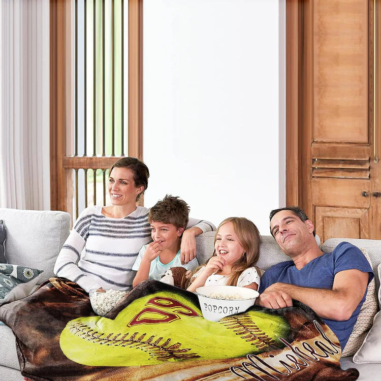 Personalized Softball Blanket, Custom Name And Number Softball Blanket Gift For Him Her On Birthday Christmas, Blanket Gift For Softball Player