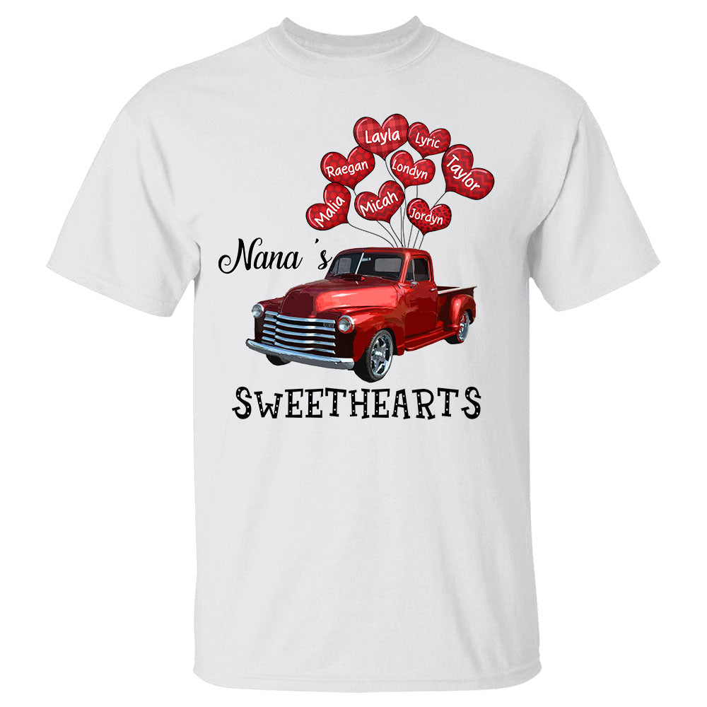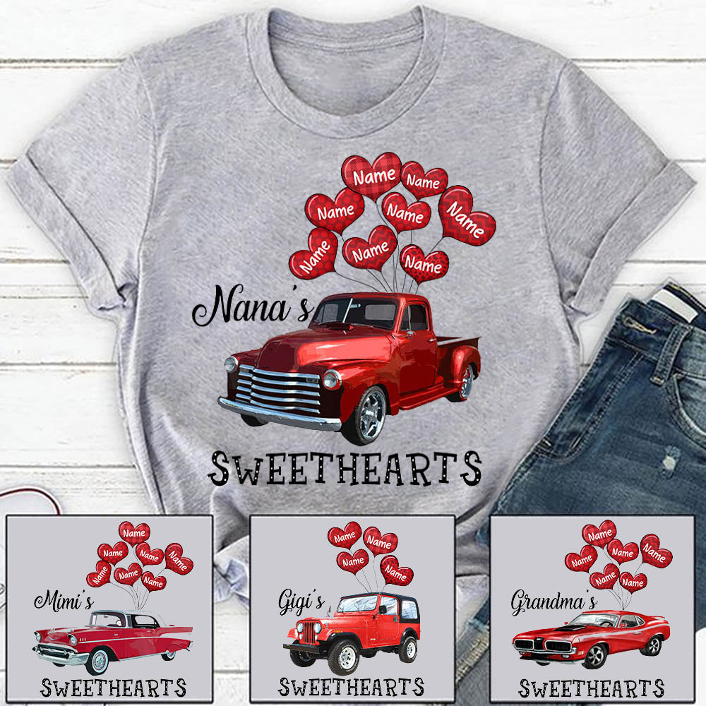 Personalized Nana's Sweethearts Red Car Shirt Nana With Grandkids Name Balloon Heart Shirt