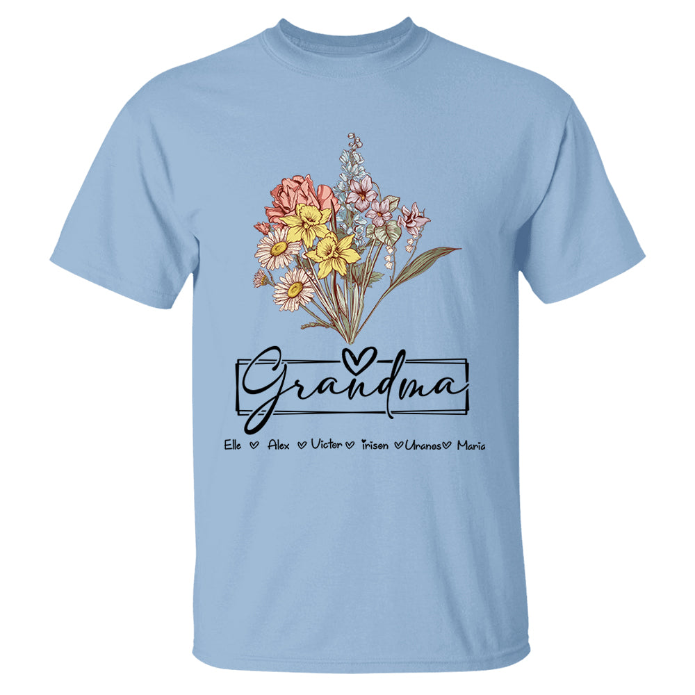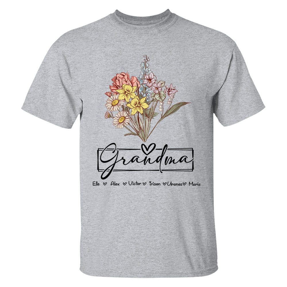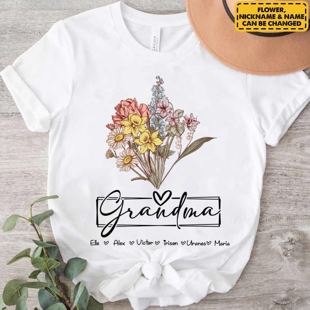Personalized Wildflower Grandma And Kids Name Shirt - Mother's Day Gift