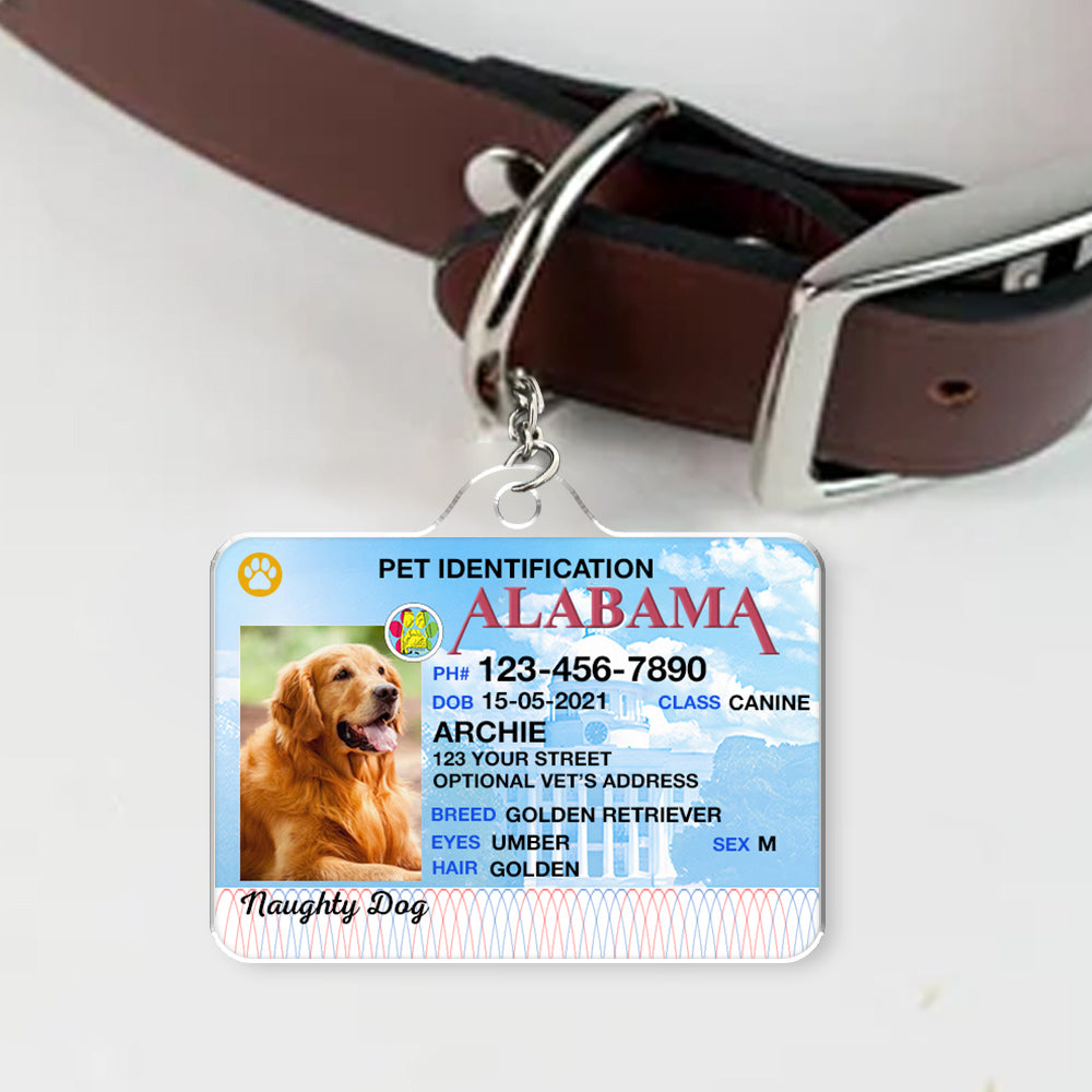 Custom Photo Pet ID Tags - Drivers License - Alabama