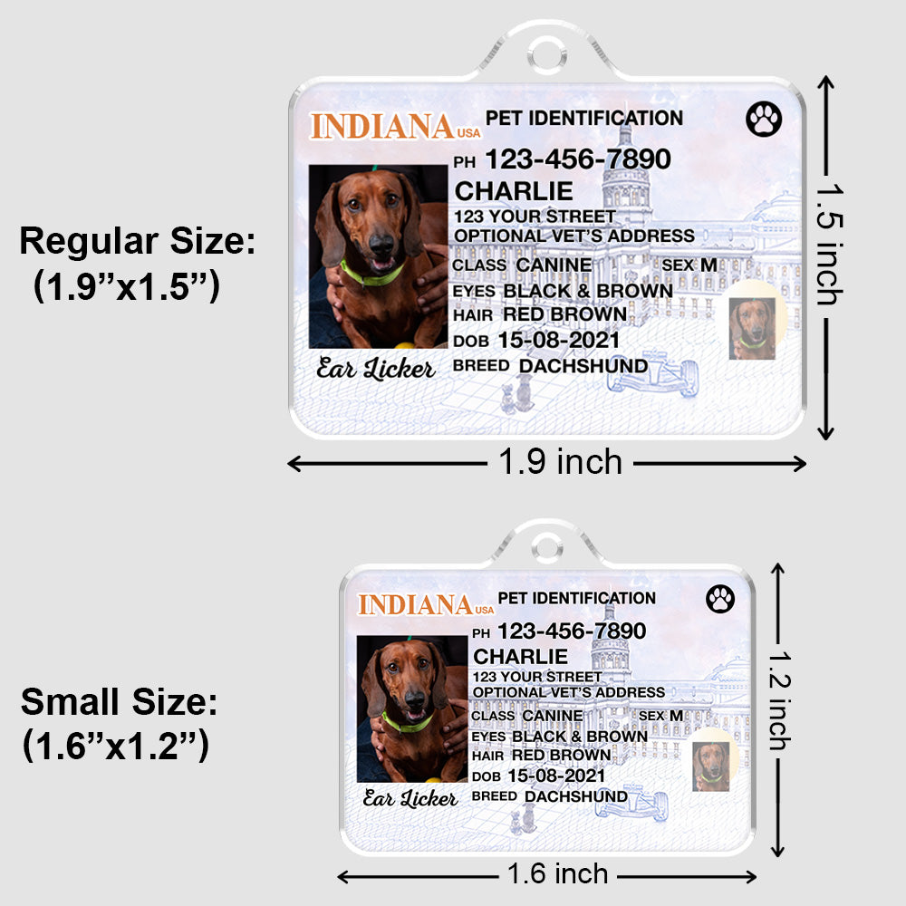 Custom Photo Pet ID Tags - Drivers License - Indiana
