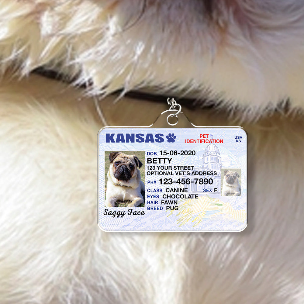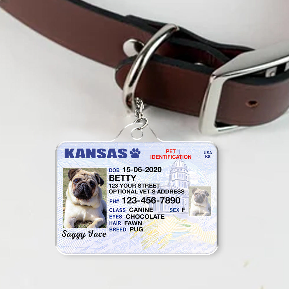 Custom Photo Pet ID Tags - Drivers License - Kansas