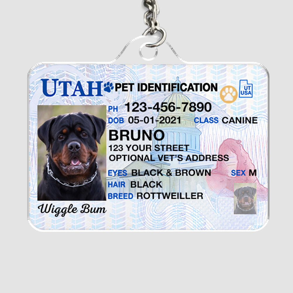 Custom Photo Pet ID Tags - Drivers License - Utah