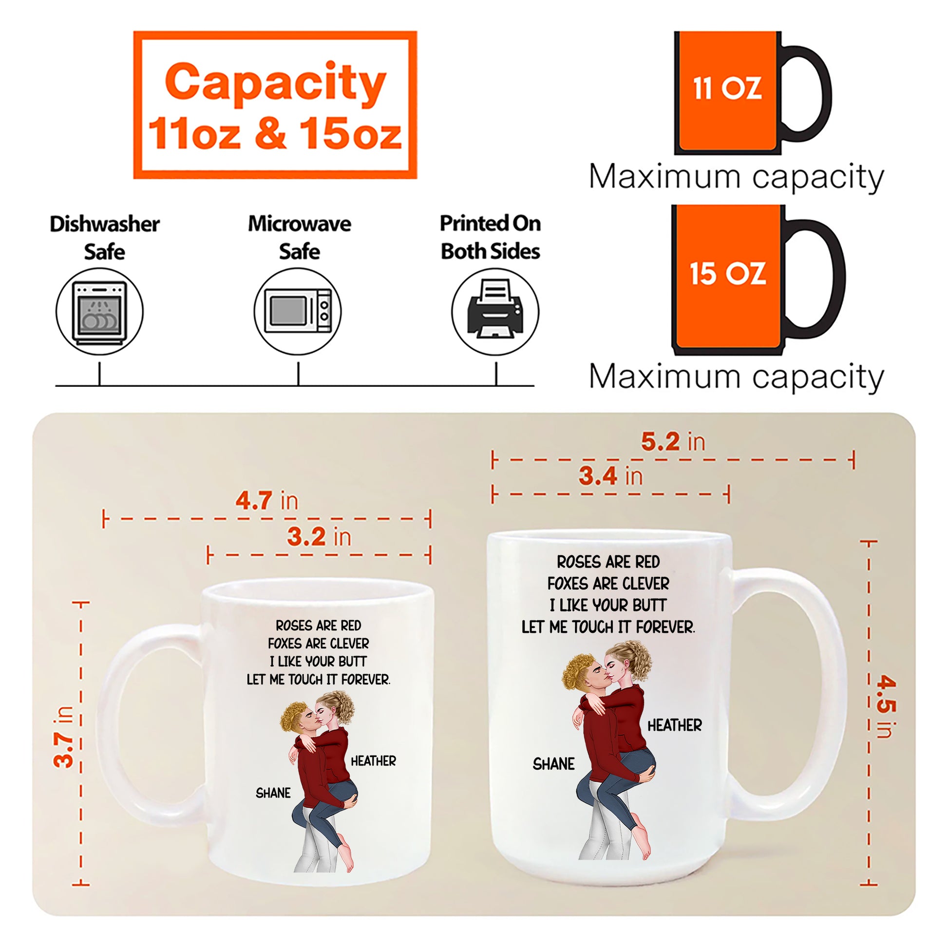 Roses Are Red I Like Your Butt - Personalized Color Changing Mugs For Couple