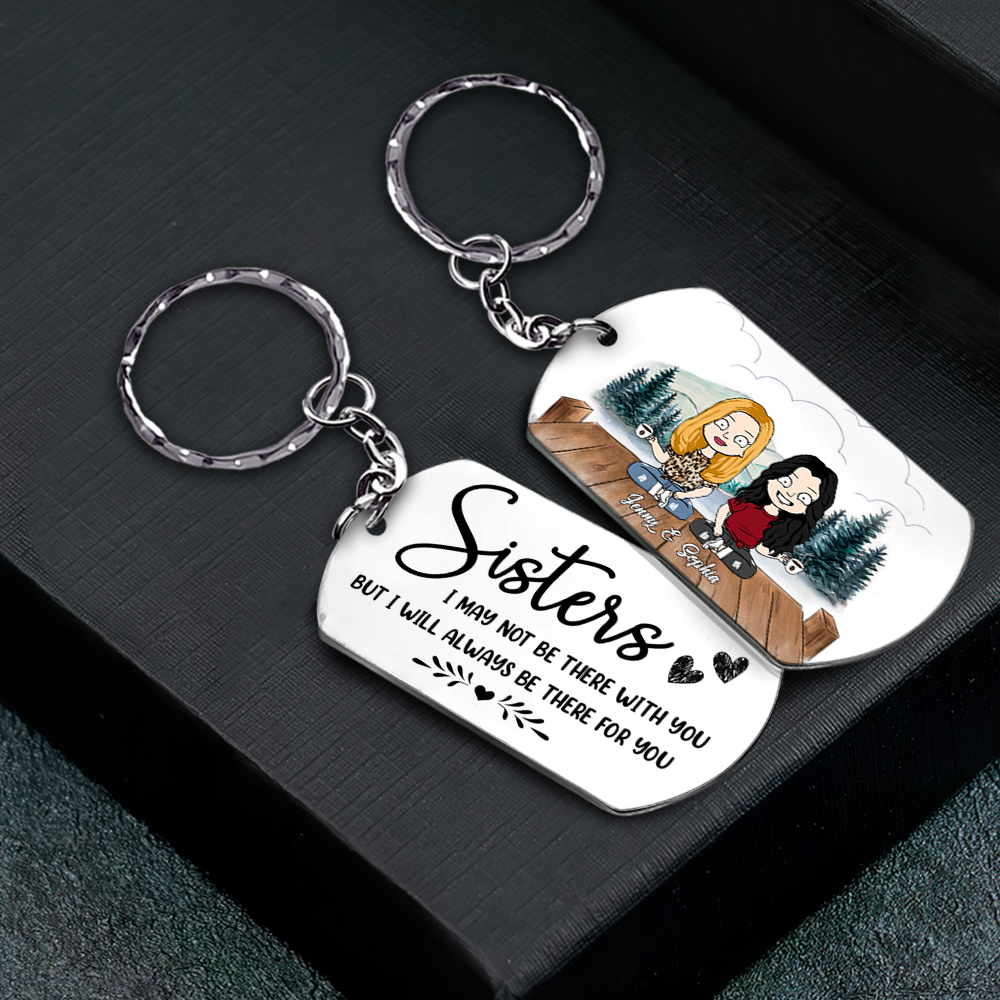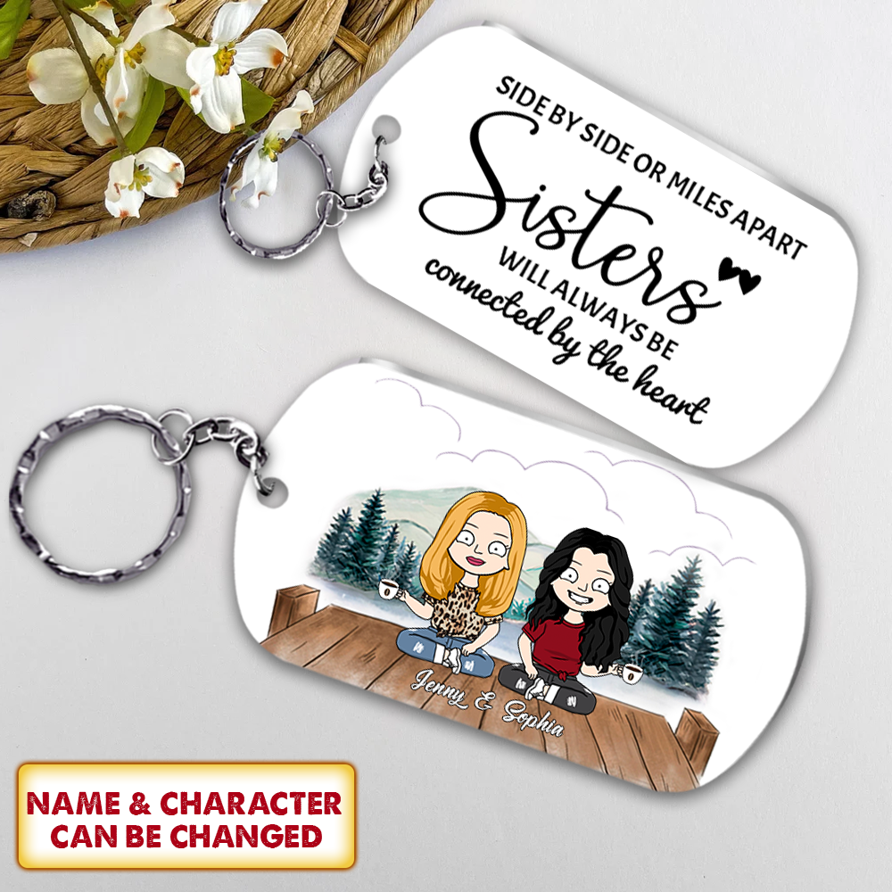 Side By Side Or Miles Apart Sisters Will Always Be Connected By The Heart, Personalized Aluminium Keychain For Your Besties & Sisters,