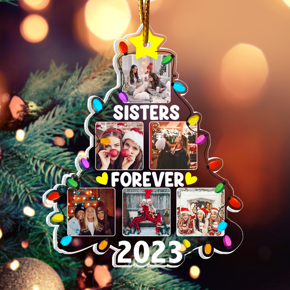 Sister Forever - Photo Sisters Christmas Tree - Personalized Acrylic Photo Ornament