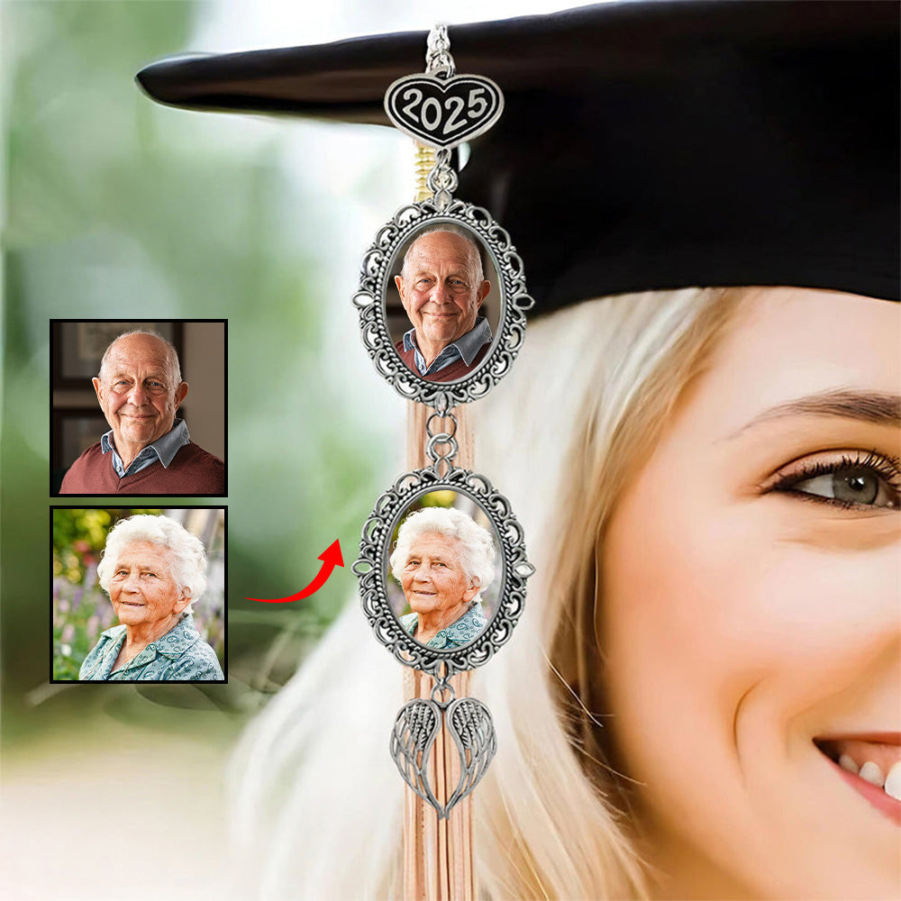 Keep your cherished memories close on your graduation day with this personalized graduation tassel charm and memorial photo charm. Capture the essence of your loved one by adding their photo to this custom keepsake, ensuring they're with you on this significant milestone. Whether it's for yourself or a dear one, commemorate a special person who may no longer be with us with this heartfelt gift.