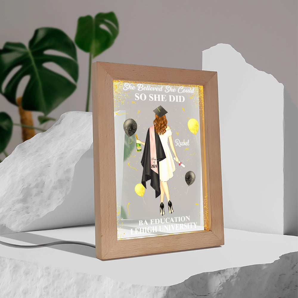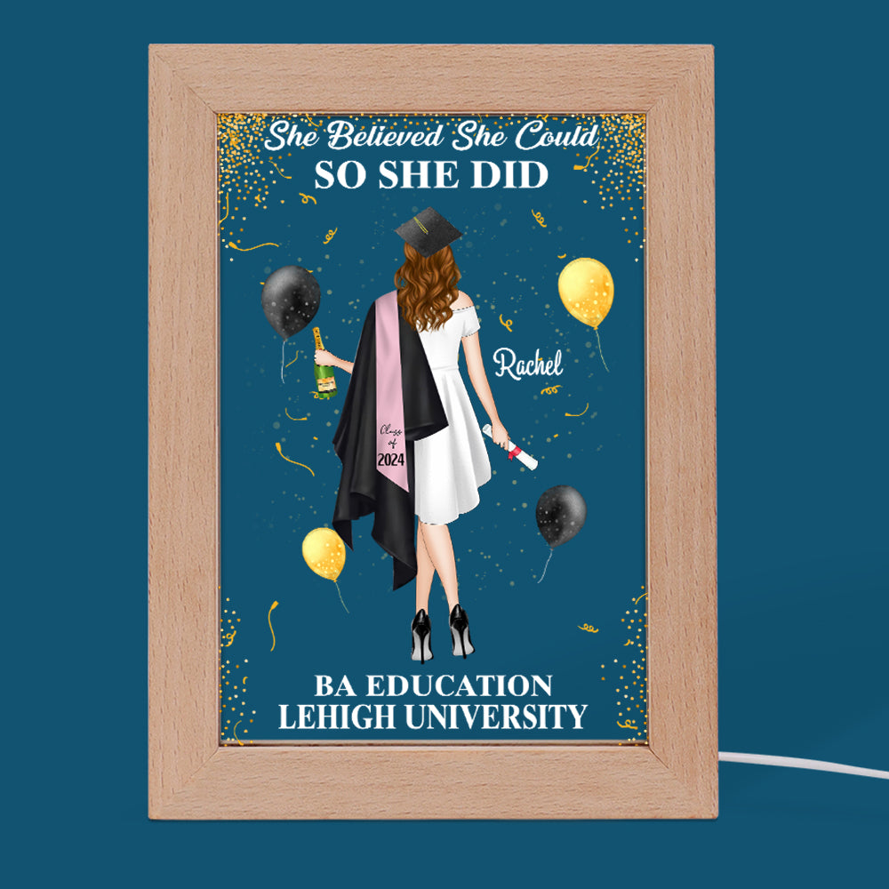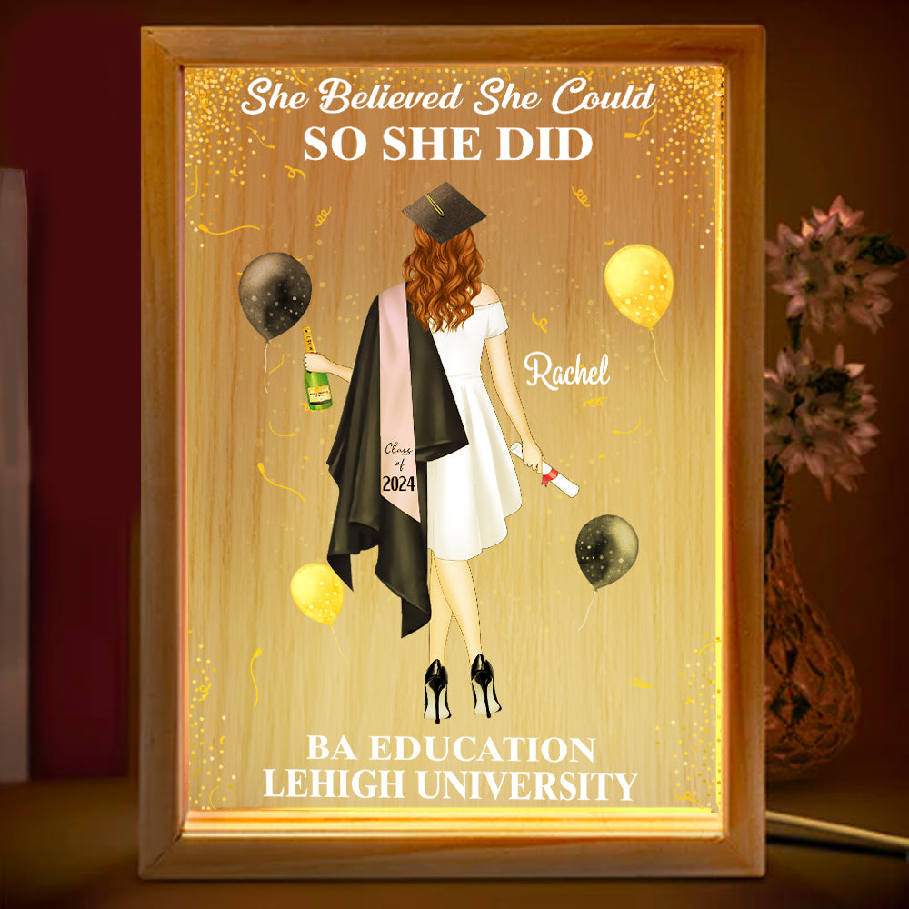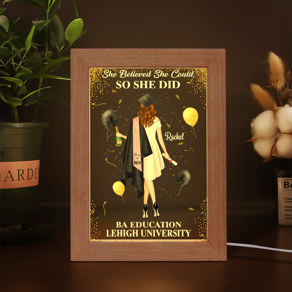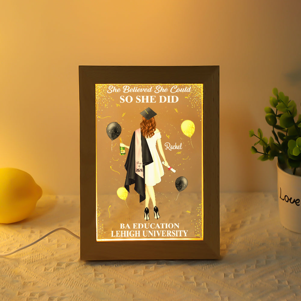 So She Did - Personalized Picture Frame Light Box - Custom Graduation Gift