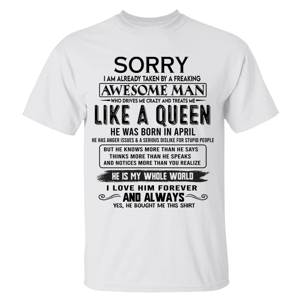 Sorry I Am Already Taken By A Freaking Awesome Man Born In April - Valentine Gift For Your Girlfriend, Wife