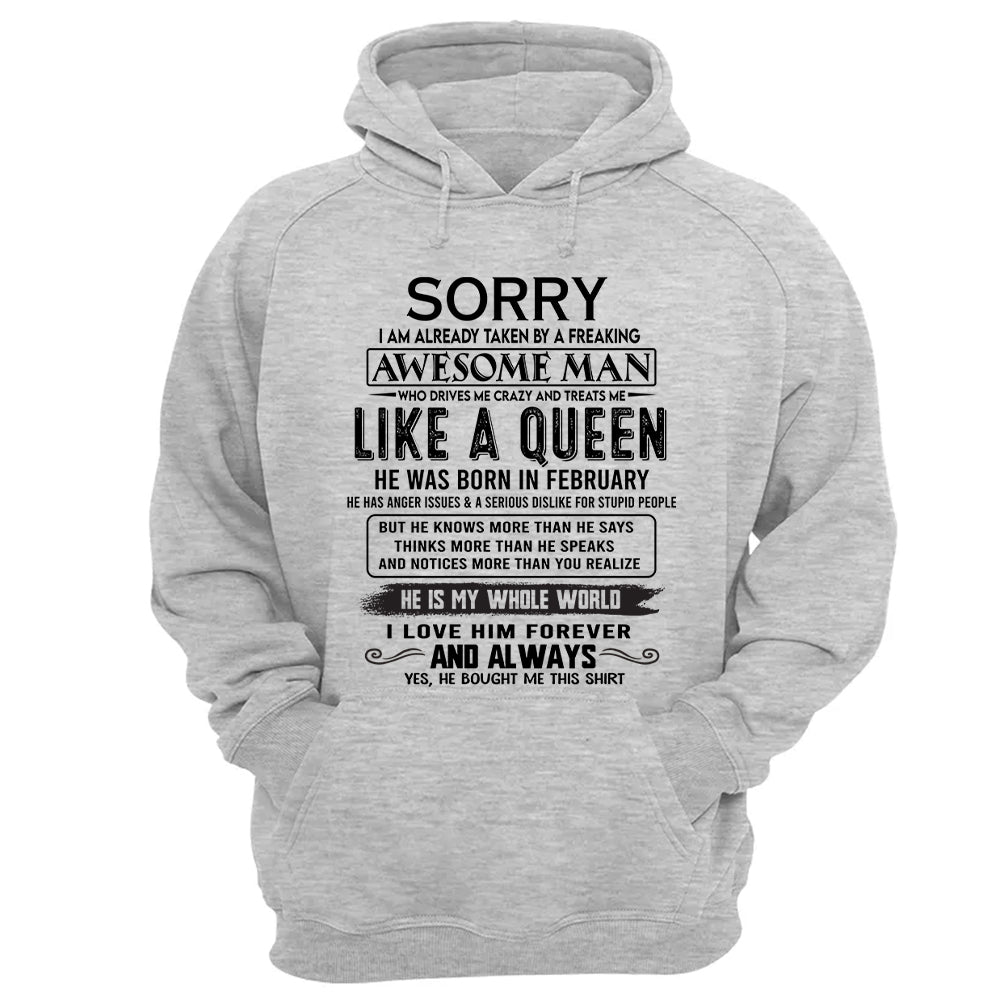 Sorry I Am Already Taken By A Freaking Awesome Man Born In February - Valentine Gift For Your Girlfriend, Wife