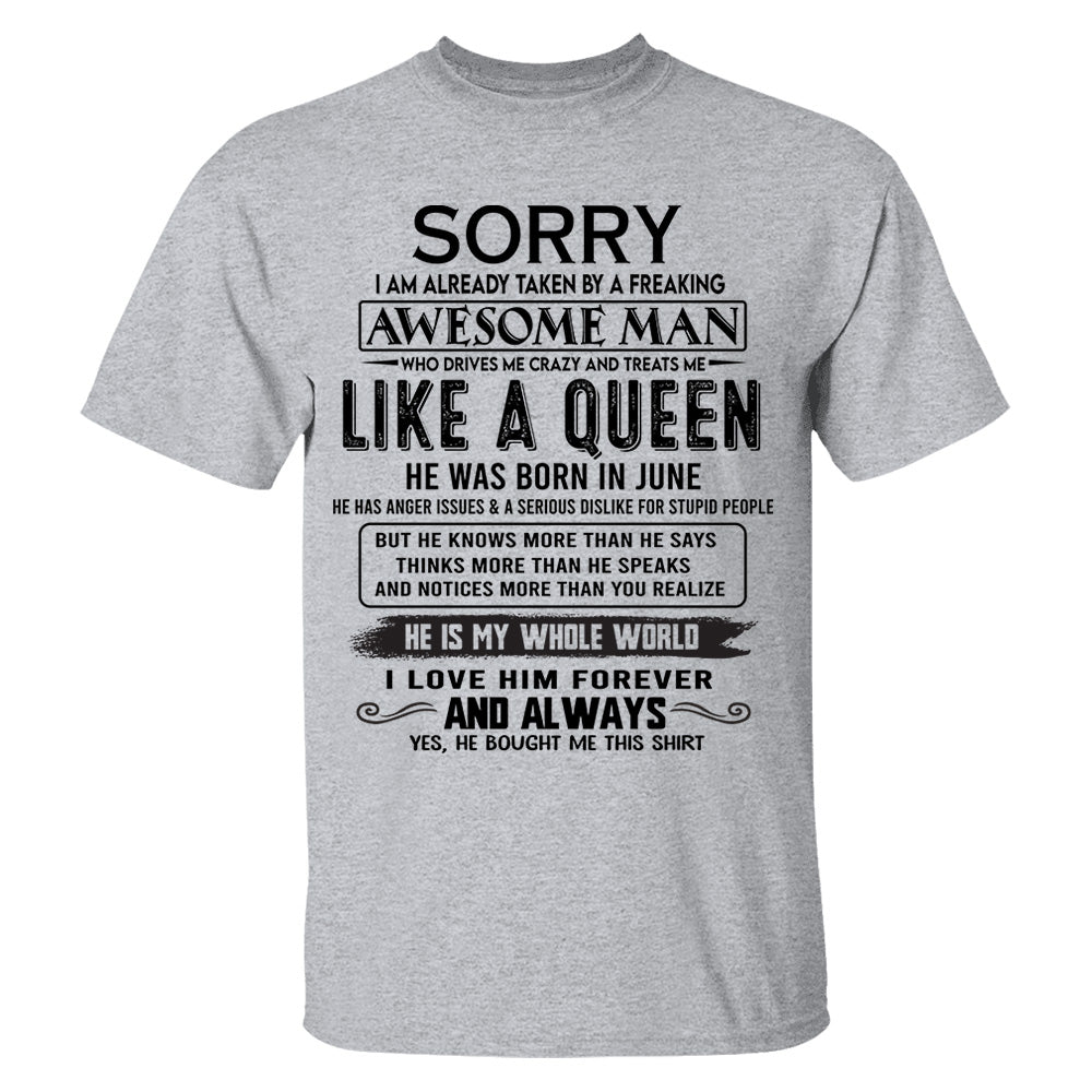 Sorry I Am Already Taken By A Freaking Awesome Man Born In June - Valentine Gift For Your Girlfriend, Wife