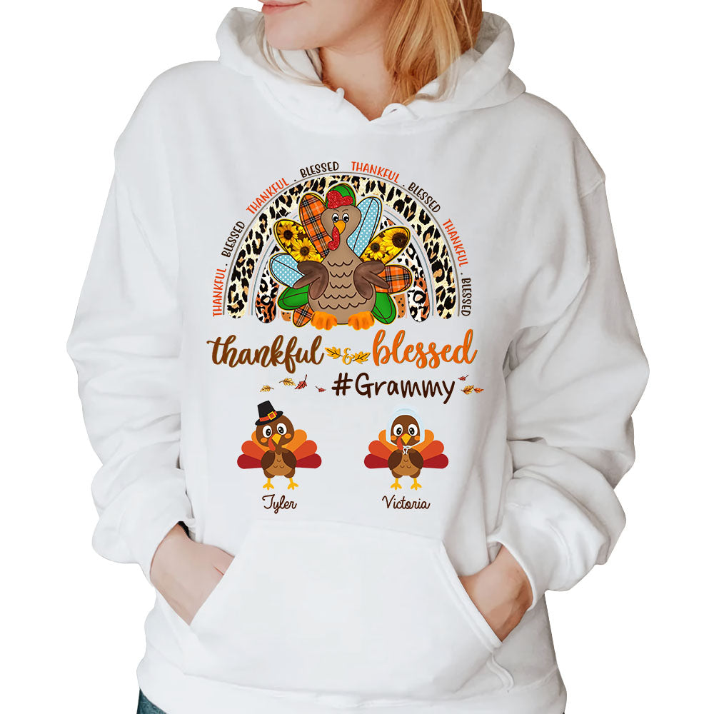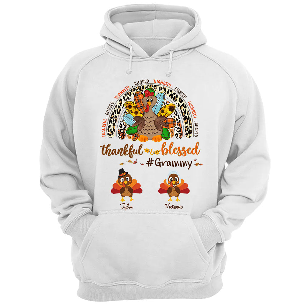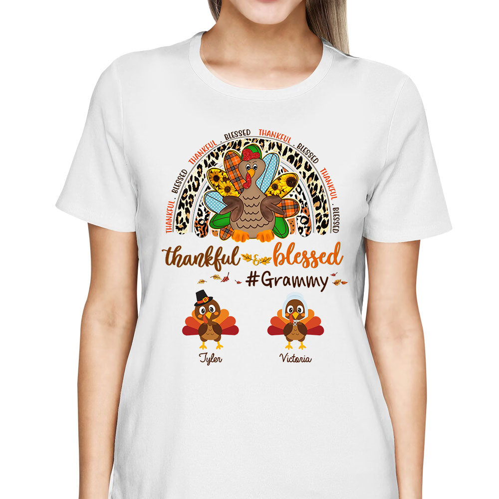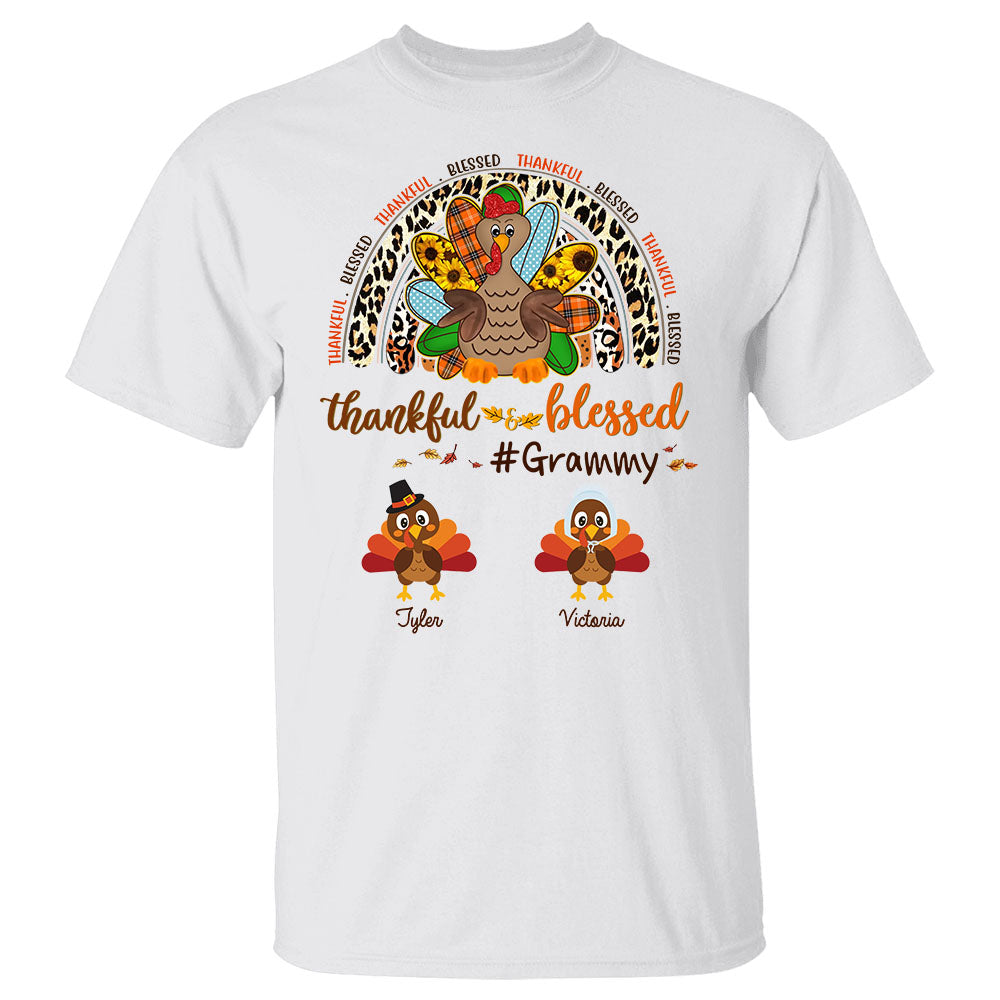 Personalized Grandma Nana Thankgiving Shirt Thankful Blessed Grandma Like Turkey Shirt With Grandkids Name