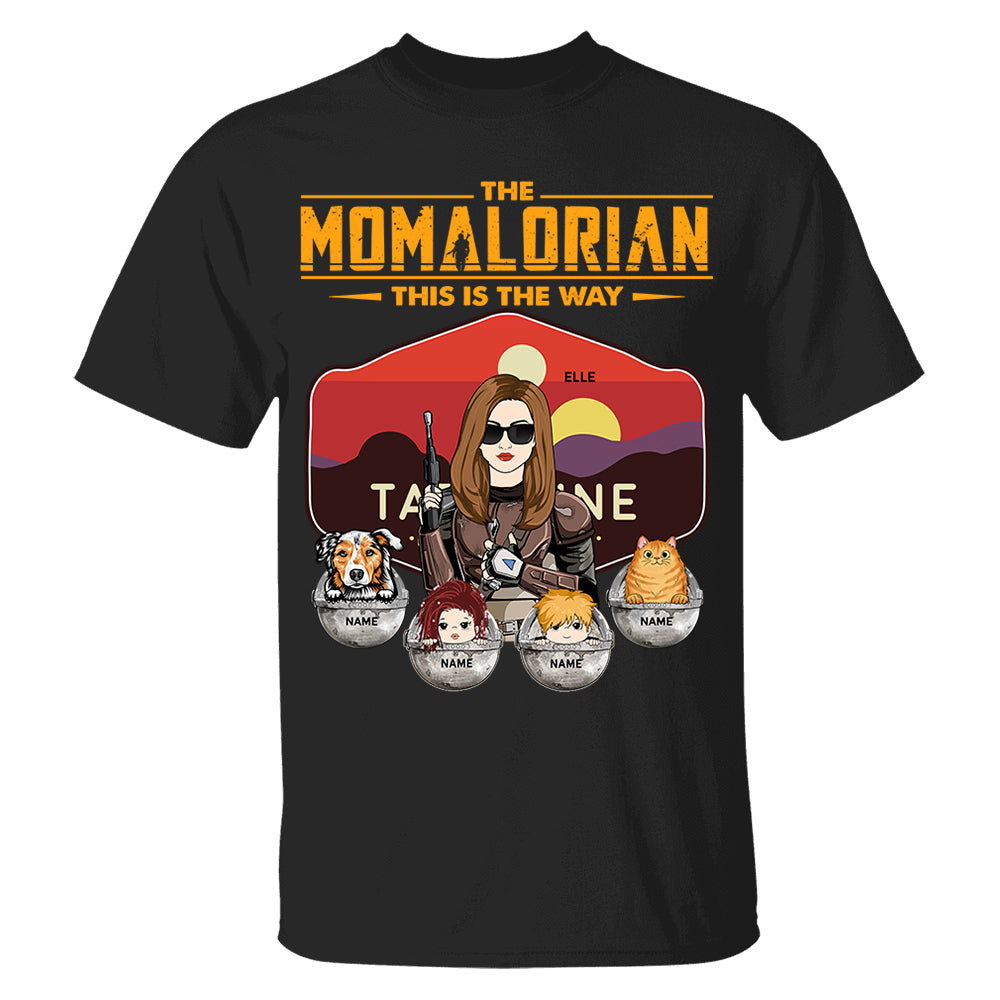 The Momalorian - Personalized Shirt Gift For Mom Custom Nickname, Kid Pet New Version With Tatooine Sunset Shirt Gift For Mom