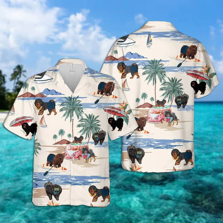 Tibetan Mastiff Summer Beach Hawaiian Shirt, Hawaiian Shirts For Men Short Sleeve Aloha Beach Shirt