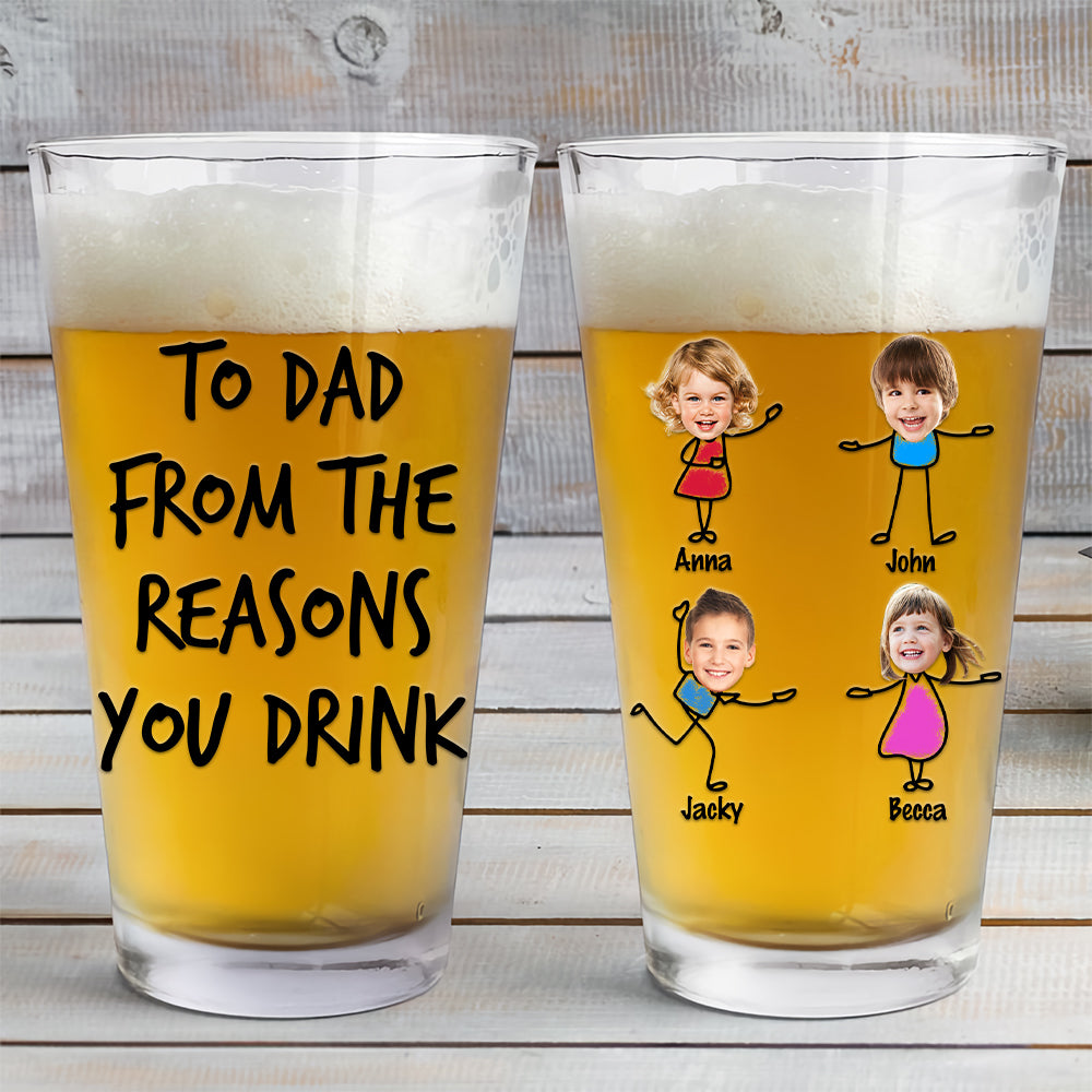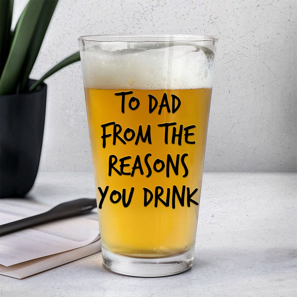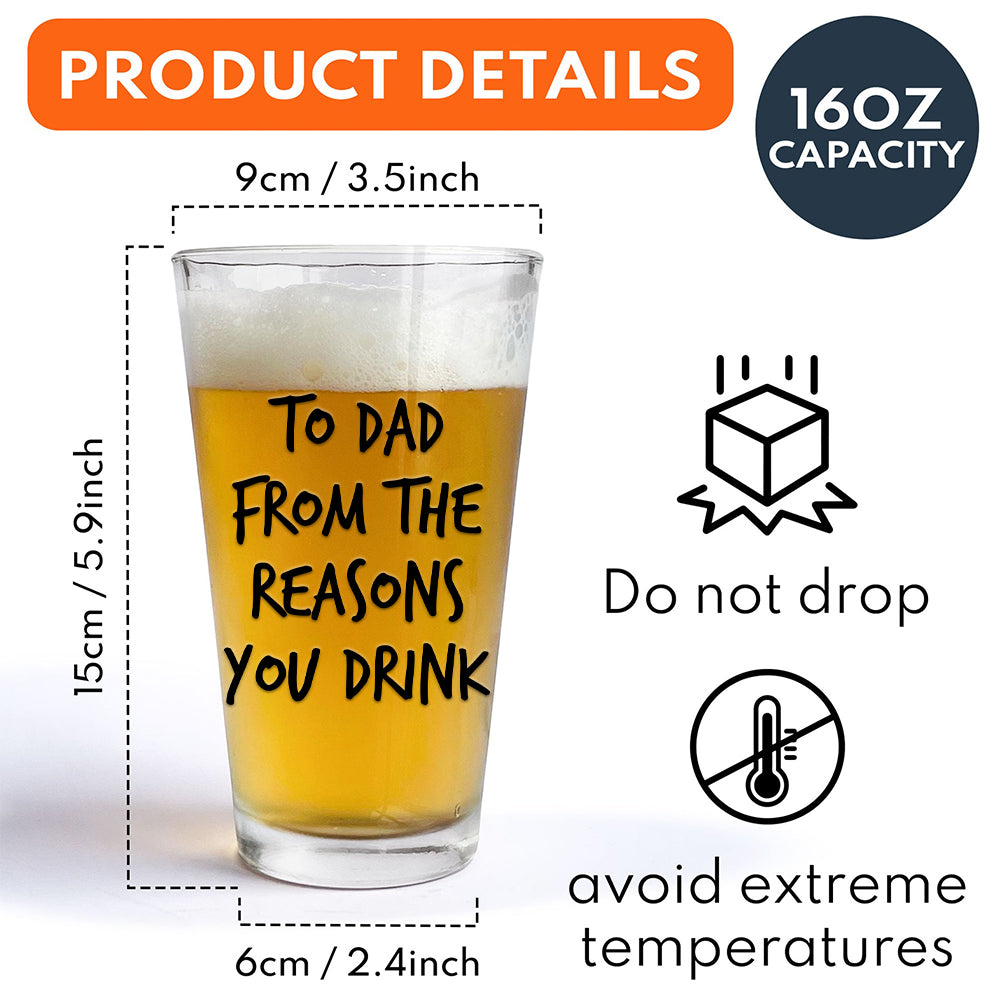 To Dad From The Reasons You Drink - Fathers Day Gift, Personalized 16oz Pint Beer Glass, Funny Present For Dad, New Dad, Stepdad, Bonus Dad