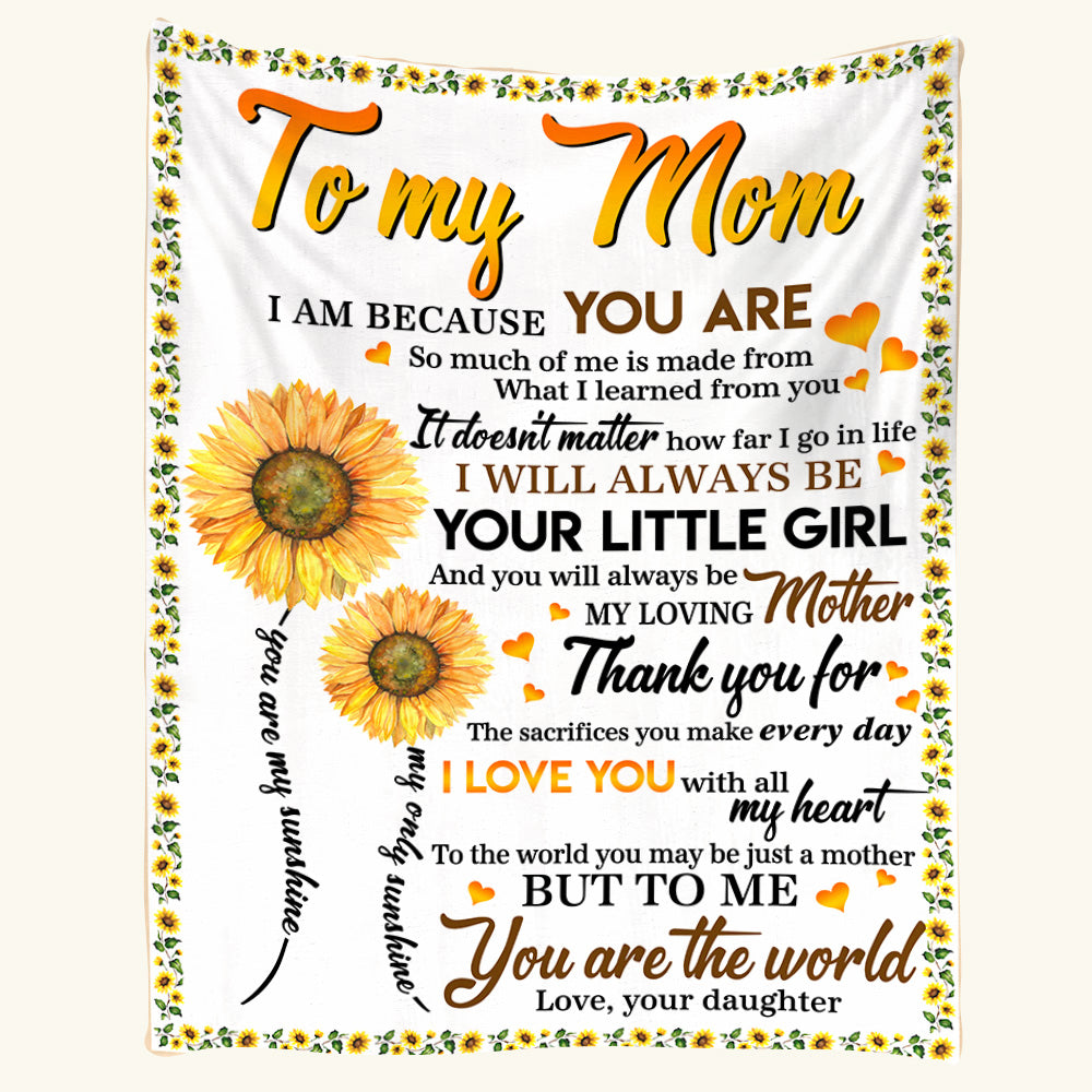 To My Mom I Am Because You Are Sunflower Blanket For Mom From Daughter