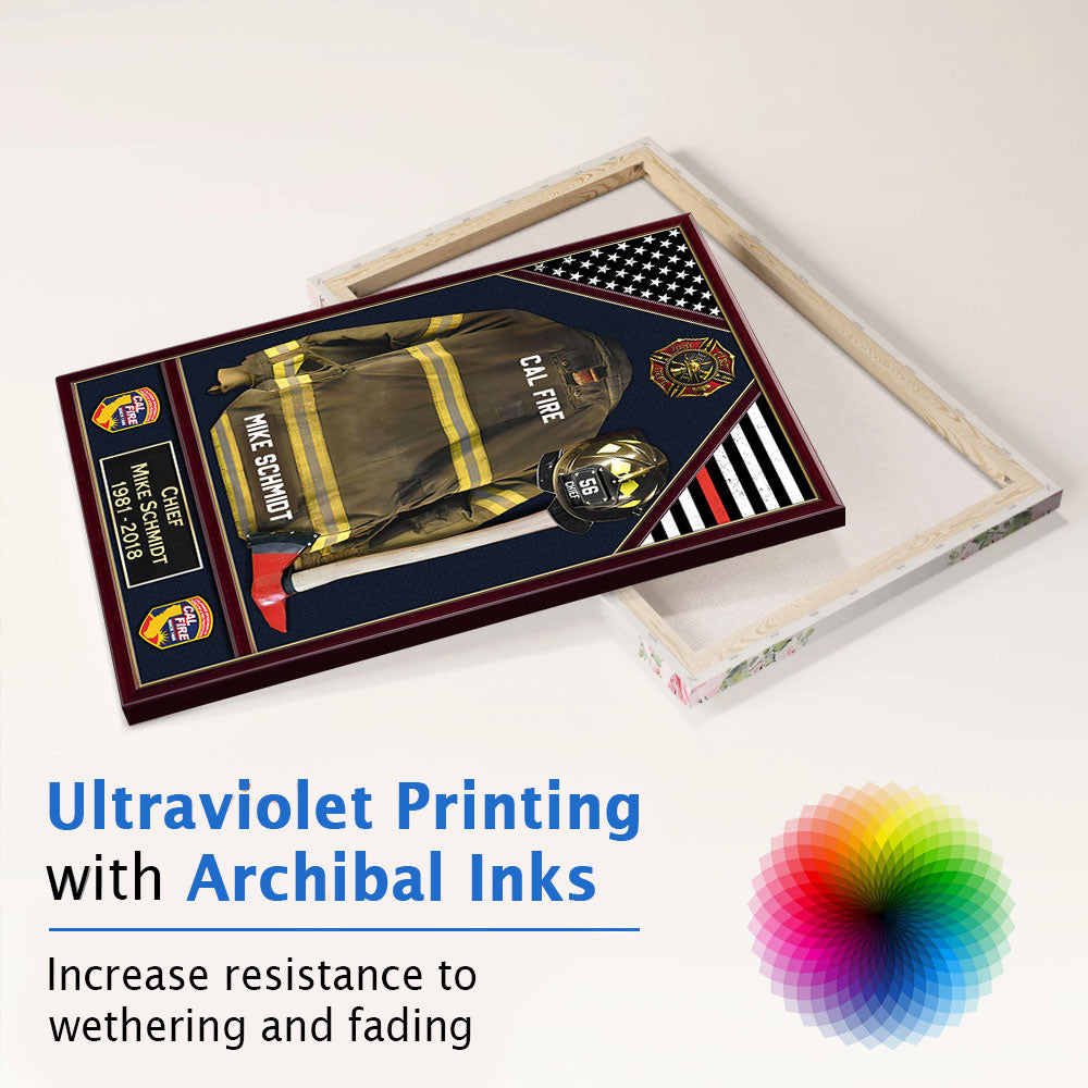 U.S. Firefighter Shadow Boxes Uniform Personalized Poster Canvas For Firefighter And Retired Firefighter K1702