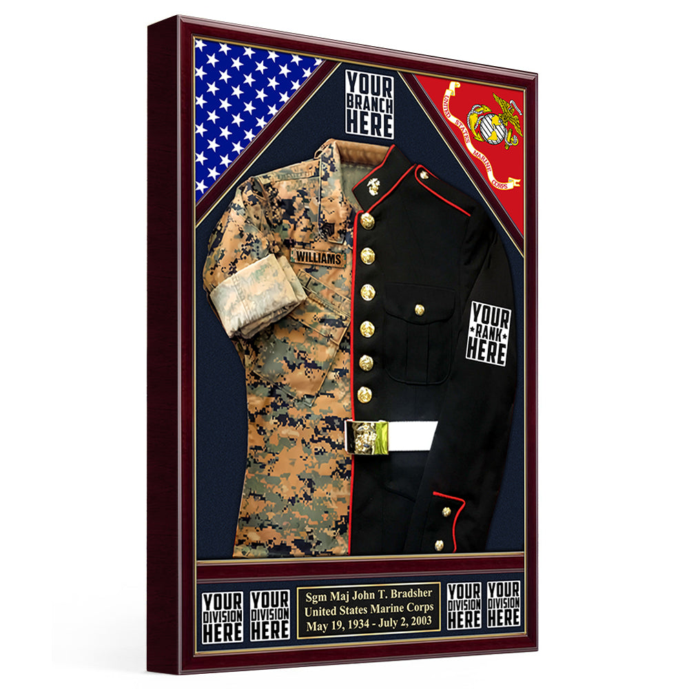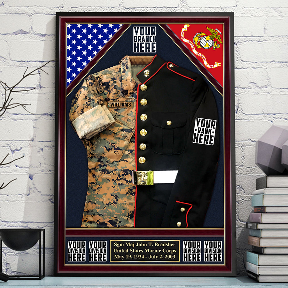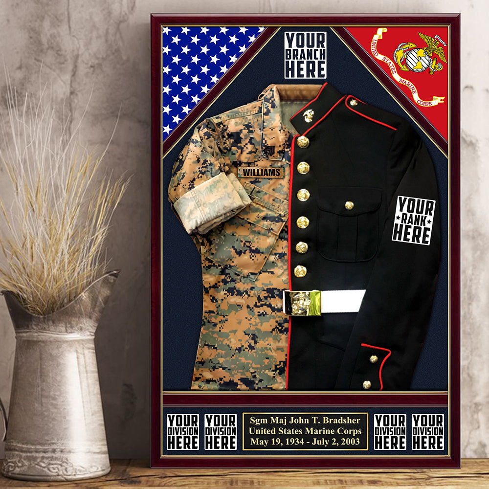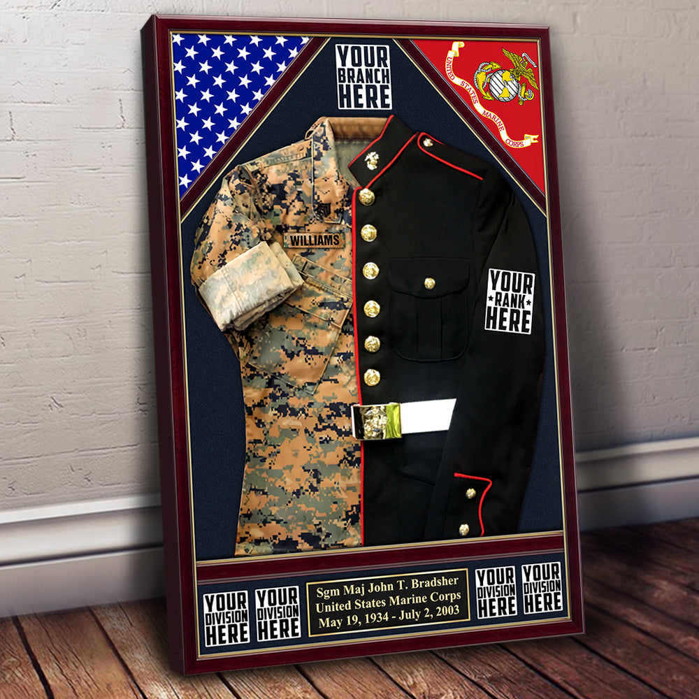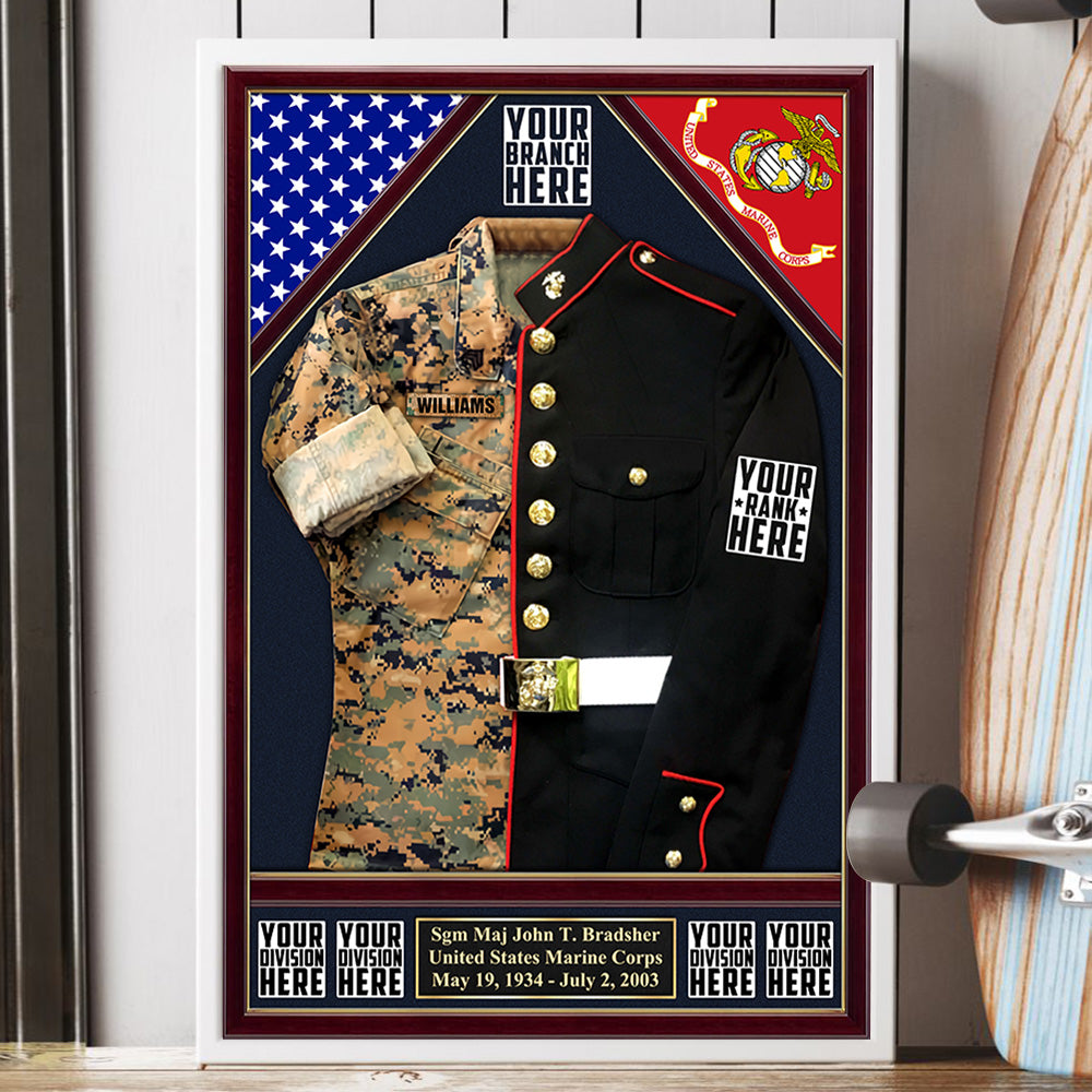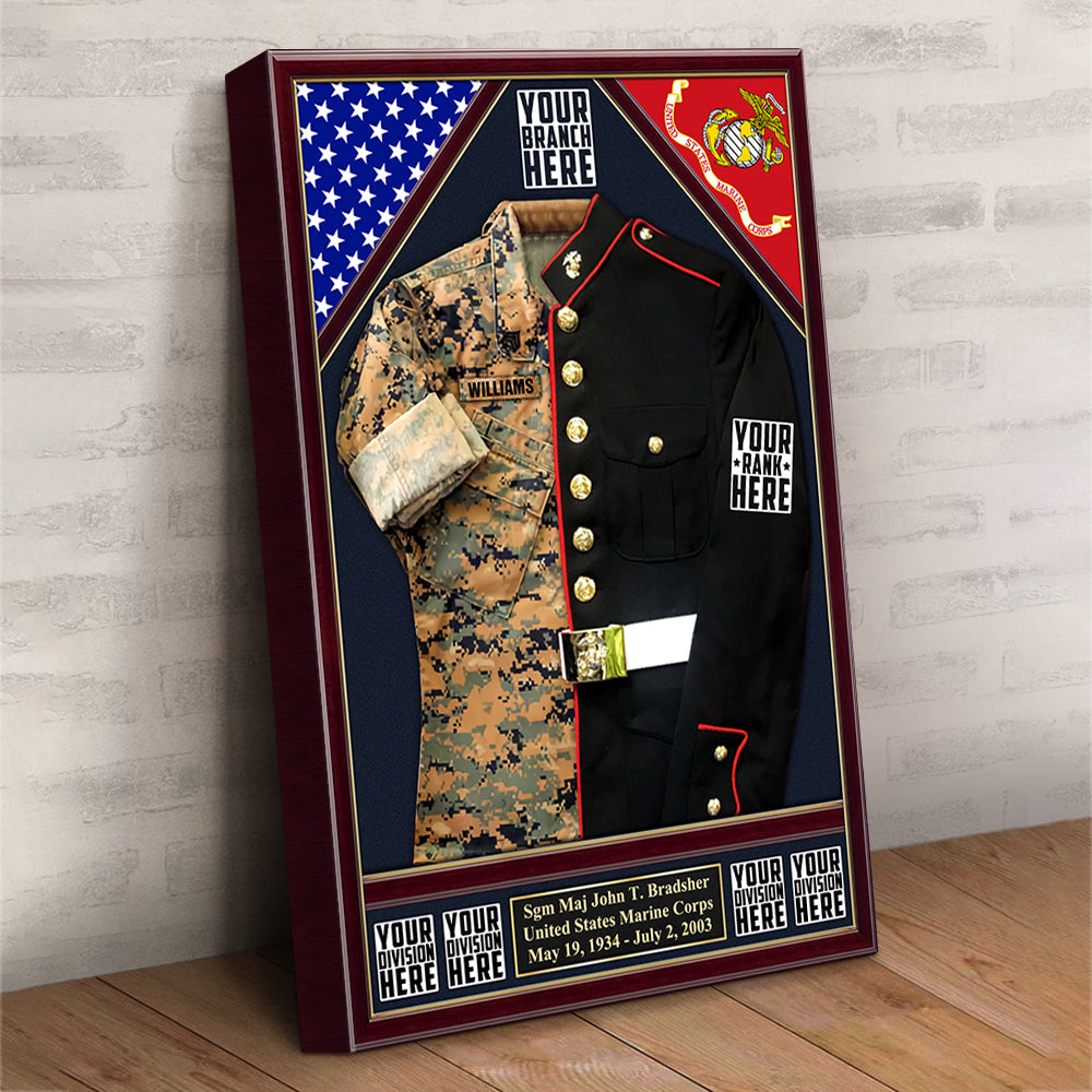 U.S. Military Shadow Boxes Camouflage and Dress Blues Uniform Personalized Poster Canvas For Military Veteran H2511