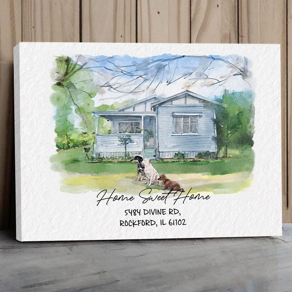 Watercolor House Portrait | Personalized House Artwork. Custom Thoughtful Housewarming Gift, Unique Poster Wall Art